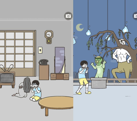 说到恐怖电影,喜欢心理式恐怖的,就不得不提日本的恐怖片了。早期是盛行「怪谈片」,也就是日本传统的鬼怪传说一类,在前作中第二十四关,就有出现鬼怪相关的如『河童』和『唐伞』;等到了续作,就变成《午夜凶铃》里的贞子了,是不是很巧妙?