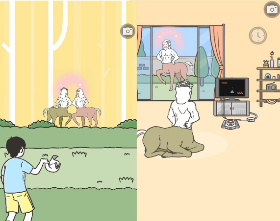 半人马一般是被描写成粗野、狂暴和不讲道理,也常是『野蛮』词的代表,当它存在于《神回避》中,却以『反差萌』的方式征服人心,只要把『花圈』和『樱桃』组合起来,交到半人马脸上,就会召唤另一个基友,然后两人欢快地离开,由于这对CP感特足,以至于续作出来,也能让人快速get到破解点。