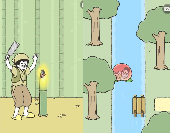 无论是1代还是2代,都设计有日本家喻户晓的民间故事,1代的《桃太郎》传说,2代的《竹取物语》,典故设计成关卡供玩家解谜,建立在大家都熟知的常理之上,解谜方式却有别出心裁,让人会心一笑。