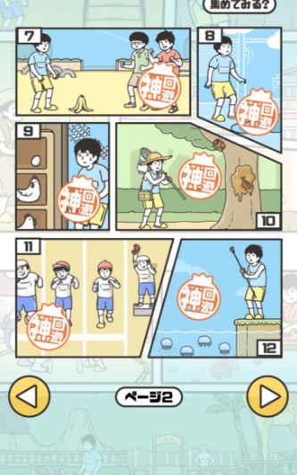 《神回避2》依旧是回避在日常生活中被隐藏的烦恼,采用漫画分镜的设计,巧妙把每个关卡组合成一幅幅连环画,是相当趣味的做法,让玩家刚进入游戏,立刻就被画面所吸引,游戏关卡数与前作相同,共30关。