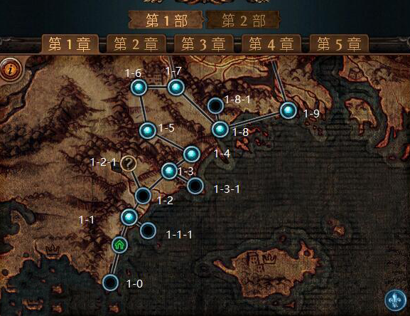 1-9:门口有个传送阵,回城,交任务。然后回来。贴墙走,这张图有图内图。需要进入下一个图内图,然后贴墙走寻找BOSS房,BOSS在一个独立房间,击杀。进入第二章前置图。