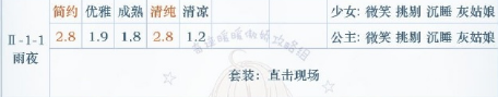 以上就是西西小编为大家提供奇迹暖暖卷二1-1公主级怎么搭配,公主级卷二1-1雨夜高分搭配攻略,希望大家喜欢。