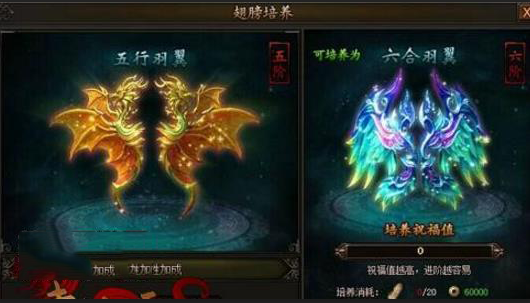 翅膀升级由祝福值决定,每次升级翅膀获得祝福值不同,祝福值提升不稳定会有10%左右的数量波动,望各位升级翅膀的时候多准备10%的羽毛。