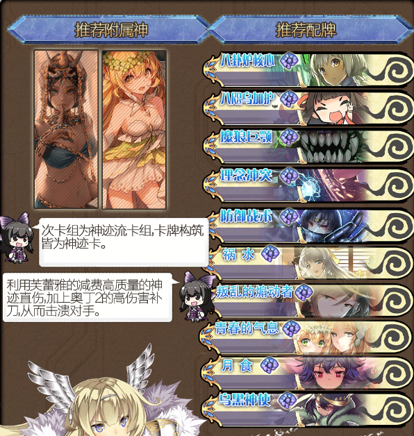 思路主要为:利用高伤害的神迹卡进行对敌方致命打击。在有芙蕾雅技能的特殊加持下,能够高效的使用神迹卡,