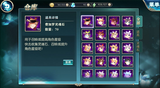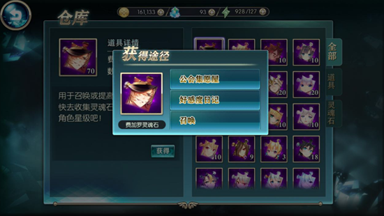 点击【获得】,可以得知灵魂石和道具的具体获得途径,就可以有针对性地进行收集啦,发家致富不是梦