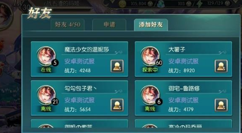 首先在游戏主界面菜单下拉找到好友菜单,点击好友进入好友添加列表,选择想要添加的好友,点击右下角的添加按钮,即可给该玩家发送好友请求;如果想快速的多添加一些好友,可以点击页面右下角的一键添加,即可对当前页面所有玩家发送好友请求哦;如果你知道好友的用户号,也可以在左下方的搜索框中输入好友用户号,搜索出好友后,点击右下方的前往添加。