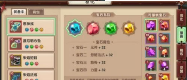 稀有宝石还可进行吞噬。在镶嵌界面新增吞噬功能,选中稀有宝石后,可以对此宝石进行吞噬操作,以提升此稀有宝石的等级、属性。