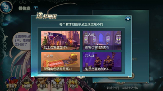 1、每个赛季的天梯赛都会有4张地图,战斗时会随机从这4张地图中选择1张作为战斗地图。玩家点击天梯赛界面中的“地图”按钮查看本赛季的地图信息。