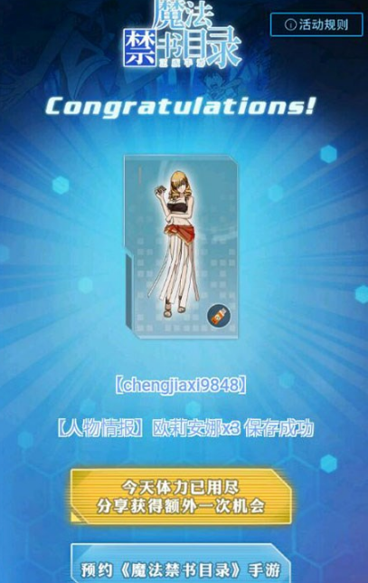 集齐十个人物情报可以召唤角色,前期只能在弹珠台抽奖获得人物情报。微氪玩家可以保留以下角色的人物情报:御坂美琴、上条当麻。