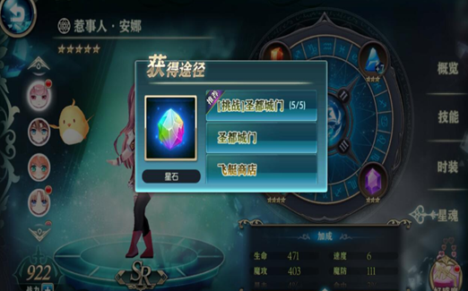 相当于《阴阳师》中的御魂,在神无月中相当于给角色穿戴装备,每个角色都可以穿4个星石,分为主属性和副属性,可以通过强化来改变附属性的种类和数值