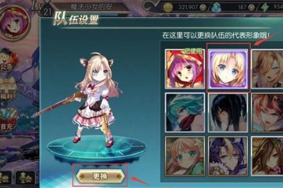 选择想要设置为队伍代表形象的角色,并点击“更换”,即可设置成功。