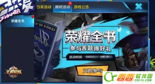 王者荣耀荣耀全书答案大全可以帮助玩家在荣耀全书活动中答对全部的题目,获得最高的奖励,王者荣耀荣耀全书答题活动分为脑力风暴,王者知识,通用常识三个板块,那么荣耀全书答案是什么,西西带来王者荣耀荣耀全书答案大全,希望对大家有所帮助。