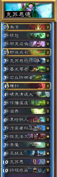 克苏恩体系的随从虽然没啥特殊效果,但身材还都可以,理想状态按费拍怪,7费上墙,十费终极感染一波(终极感染确实强,解决了德鲁伊过牌这个大问题),然后找克苏恩斩杀,感觉美美哒!