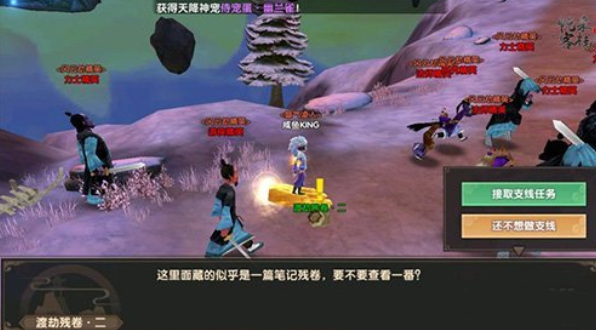 第三个任务在你继续前行上山的一处营地中,地面上有一只破碎的罐子,为渡劫残卷二。查看残卷内容,是当年的一些旧事。