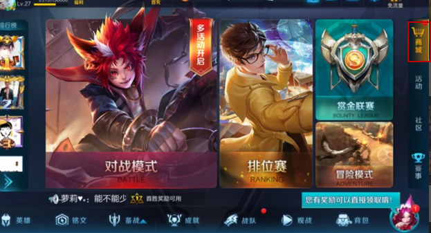 1、打开游戏,进入商城