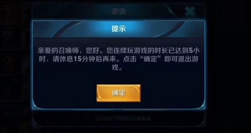 游戏时间过长以后,就会跳出强制休息的提示,点击确定游戏就没了,必须要休息15分钟再上。