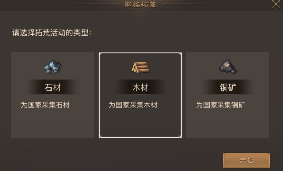 2. 要注意的事拓荒的目标,可以在家族的活动界面看到,这个目标由家族长修改,一般家族长会根据国家的需要来设定目标,对于我们来说开采哪种资源获得的奖励时一样的。