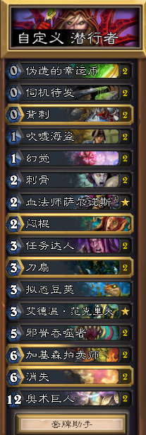 炉石传说DK的新版本的套路虽然多,但是德鲁伊确实是太过强大了,而盗贼似乎已经成了新的隐藏职业了,新版本的卡除了DK可以用,其它的卡好像没什么能用的,但是这里小编为大家带来这套由瓦娘带来的消失奇迹贼,打德鲁伊似乎效果还不错,这套带消失的奇迹贼整体思路还是不变,舍弃了火车王冷血的斩杀,靠消失巨人战场斩杀,可以说强度也还不错,大家可以前来参考。
