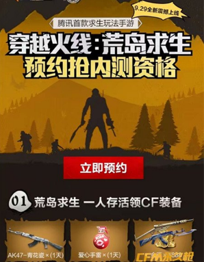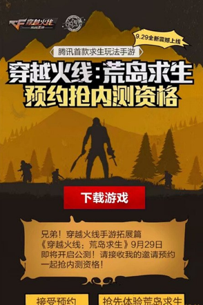 穿越火线手游拓展篇穿越火线荒岛求生将会在9月29日正式开启公测,请接收我们的预约邀请,一起抢内测资格。