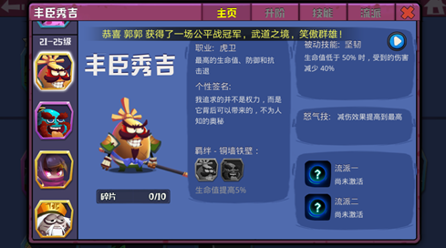 蛋国志丰臣秀吉值得培养吗,蛋国志丰臣秀吉技能详解。蛋国志游戏中的英雄众多,玩家需要选择性的培养,丰臣秀吉的职业是虎卫,其防御高,血量一半时减伤,不少玩家都有获得这个英雄,蛋国志丰臣秀吉值得培养吗,西西小编来为大家详解蛋国志丰臣秀吉技能。