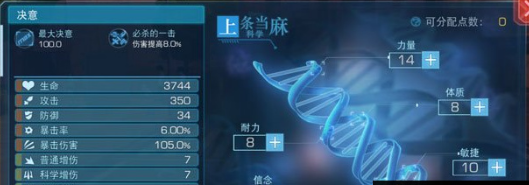 力量:影响角色的攻击和属性伤害(普通/魔法/科学)