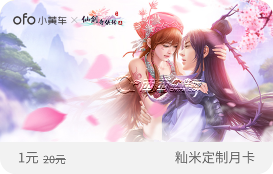 继一系列免费送月卡、免费骑行活动之后,近日,ofo联合《仙剑五》手游发布了联名月卡。原价20元的月卡,只要1元就能买到,可每天骑行20次,时长限2小时内免费,超出时长正常计费。