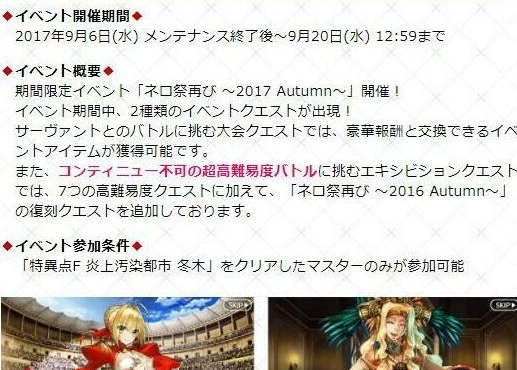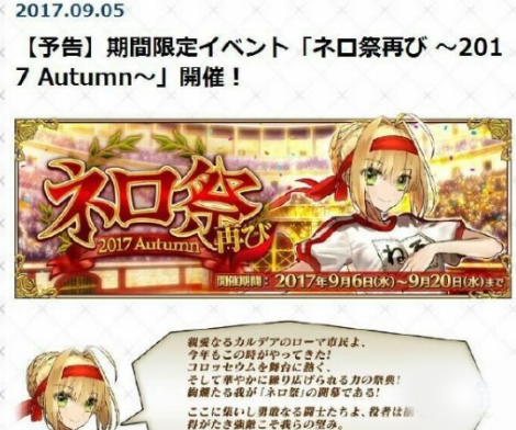 期间限定活动“尼禄祭再临~2017 Autumn~”举行!
