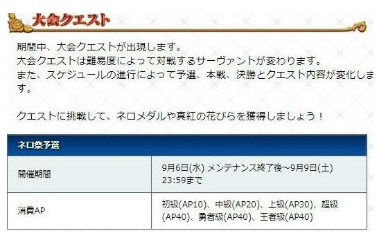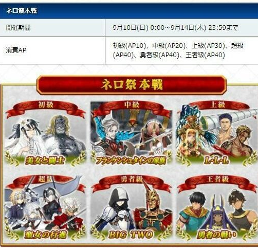 以及,在挑战不可继续的超高难度战斗的表演quest中,会追加7个超高难度quest和“尼禄祭再临~2016 Autumn~”的复刻quest。