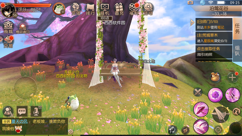 泊莺花谷地图新增多人秋千,约上你亲爱的ta,一起在这初秋时节,伴着微风和花香,在秋千上留下美好的回忆吧。