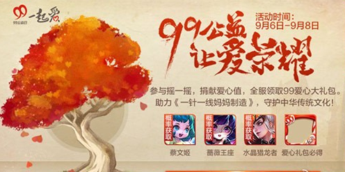 爱心捐献方法:9月6日~9月8日期间,每天进入活动界面摇动爱心树即可获得爱心值,点击捐献即可累计爱心并且获得奖励!