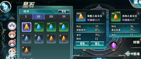 不同职业选择选择不同的星石属性,但是有一个属性是非常重要的,那个属性就是速度,因为神无月是回合制游戏,所以速度是非常重要的,有了速度优势的我们就拥有了一切,先出手就能占据主动。