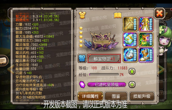 自身对控制技能具备一定的抵抗力,且受到治疗的恢复量非常显著,展现了他顽强守护这份宝藏的决心。他多个技能都附带控制效果,起到非常有效的骚扰作用。相信队长大大们一定非常盼望打开这个宝箱,不过想要夺取宝物前可要先问问秘宝守卫是否允许哦!
