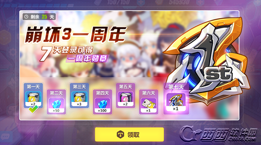 崩坏3一周年7天登陆奖励汇总一览,崩坏3一周年庆典即将到来,游戏中除了上线活动内容之外,还有崩坏3一周年7天登陆奖励,连续登陆7天还有一周年纪念勋章,那么崩坏3一周年7天登陆奖励有哪些,西西带来一周年7天登陆奖励汇总一览,希望对大家有所帮助。