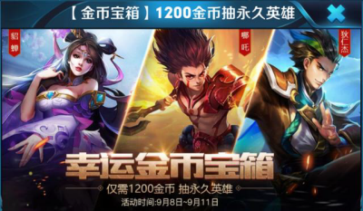 活动时间:9月8日-9月11日之间,玩家都是可以对幸运金币宝箱进行抽取的。