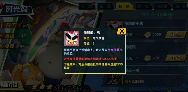 时光鸡怒气技则是会直接选取对方生命值最少的角色进行攻击 大几率能让敌方角色直接死亡哦 少了个敌方英雄 胜率会大大增加