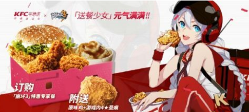 2017年9月15日至10月15日,「崩坏3」联动「KFC宅急送」推出“「崩坏3」特惠专享餐”,线上订购专享餐附送吮指原味鸡+4★圣痕「琪亚娜·送餐少女」!琪亚娜的送餐少女打工之旅即将启程!