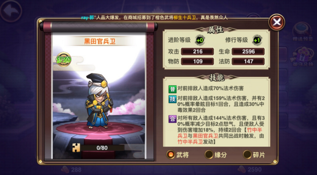 星期六魔王黑田官兵卫怎么样,黑田官兵卫技能属性详解。星期六魔王游戏中的橙将很多都是值得培养的,黑田官兵卫是一个法术输出的武将,不少玩家都有招募到,对这个武将不了解,星期六魔王黑田官兵卫怎么样,西西小编来为大家详解黑田官兵卫技能属性。