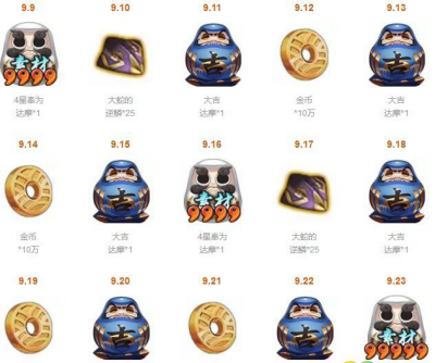 活动内容:在活动期间的15日内大人每日登录都能获得神秘的符咒*1,在23日当天登录还能获得神秘的符咒*3!除此之外,每日还有不同好礼哦!