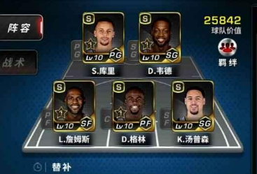 库里 韦德 詹姆斯 格林 汤普森。这个阵容的话配上
