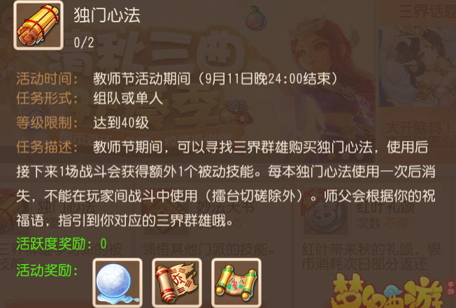 梦幻西游手游独门心法NPC和技能大全