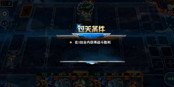 过关方式:第一回合召唤假面龙切防御状态!结束!