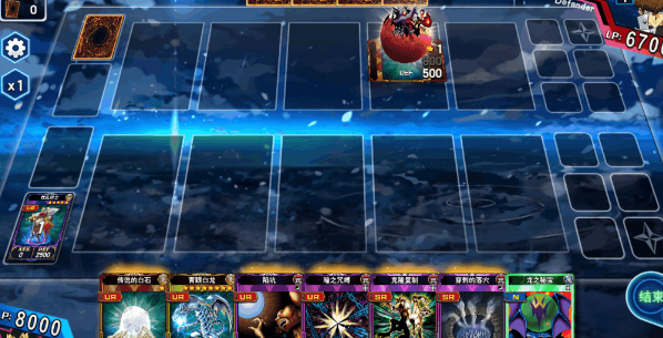 过关方式:使用融合准备检索白龙,用其中两个攻击表示的怪当祭品召唤白龙,使用爆裂疾风弹然后白龙切防御状态,用剩下的攻击表示的怪攻击骗出神反,然后使用融合召唤究极龙,接着召唤把究极龙当做祭品召唤光龙用光龙攻击对面骗出暗之束缚,最后用帝王海马攻击玩家!游戏结束!