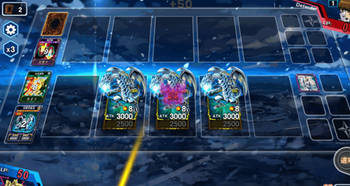 过关方式:第一回合盖下神之恩惠,召唤假面龙攻击对面骗出暗之咒缚!结束!对面会攻击两次我方假面龙会特招出白石!第二回合召唤白石把两个白石切防御状态!然后特殊召唤灵魂龙攻击对面骗出六芒星法阵!第三回合用白石骗出对面的暗之咒缚,使用死者苏生召唤扔进墓地的白龙攻击对面无头骑士结束!第四回合,白龙攻击对面疾风盖亚,然后使用融合召唤究极龙结束!对面会召唤个灯魔!第五回合,使用究极龙攻击对面黑魔导,然后使用融合解除特殊召唤三条白龙,第一条攻击对面灯魔,第二条触发对面陷阱魔法筒,第三条攻击对面玩家游戏结束!