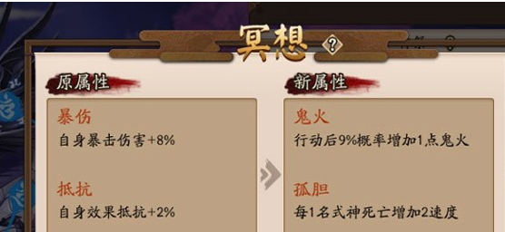 阴阳师冥想是神祭中的,不少小伙伴们想知道这个究竟怎么玩,属性有什么可以进行替换的,因此不清楚的小伙伴们,就让小编给大家详细的讲讲,想知道的就一起来看吧。