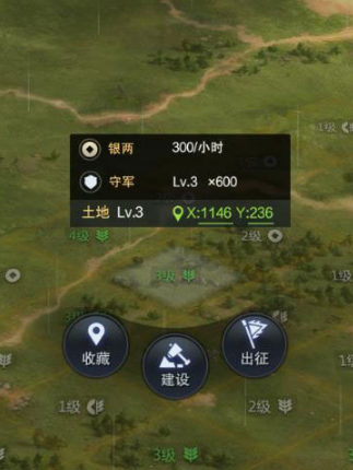 游戏中,宫城的等级限制着土地的数量与范围,在有限的数量与范围内,各位主公们需要尽力占领高级土地,如在一级资源带的时候,尽量多打3级以上的土地,最好能打4级以及5级土地,打了5级土地,间隔一段时间还会长出村庄,主公们派兵占领村庄可以额外获得更丰厚的收益!