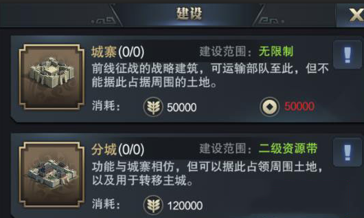 2.建设分城所需要的资源会在队伍出发时立即扣除。