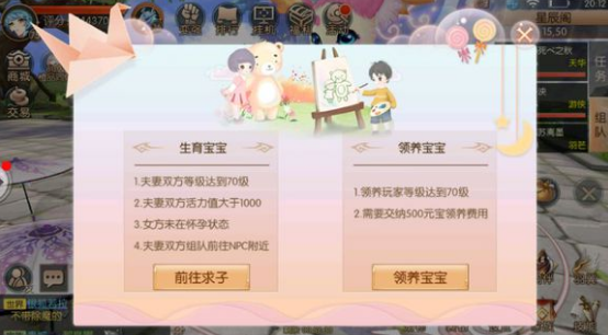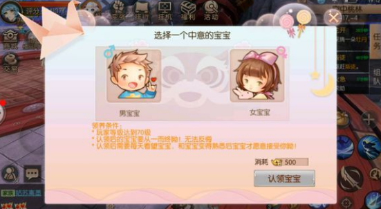 晒完了夫妻合照,是时候现再晒全一波家福了,萌娃育儿系统9月13日温馨开启,70级以上的恩爱夫妻们,可以共同孕育爱情的结晶。当然,单身贵族们也可以通过领养迎接自己的小宝贝,大手牵小手,幸福一起走,赶快晋升成为宝爸宝妈吧!(本功能将首先在部分服务器开启,请不要着急)