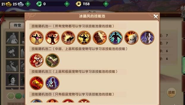 冰晶凤为极品(橙色)侍宠,四维属性初始为力量7、体魄7、元神6、筋骨6,全属性单个最大可达到19点,这样需要在融合系统中将冰晶凤升至三级才行。而其因为是极品(橙色)侍宠,所以在神通技能方面则能够拥有六个,并且能够从所有技能随机池中随机抽取属于自己的技能。