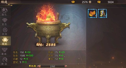 提升战力重点五:锻造,游戏《风云2》中,锻造系统包含的内容很多,有强化,宝石、套装、等三种,其中强化,