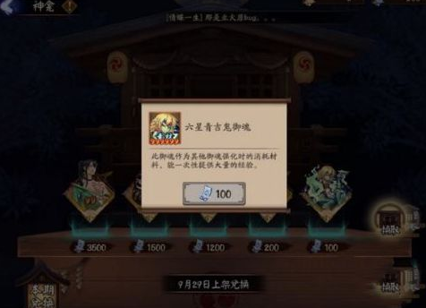 青吉鬼御魂获取还有其他途径,100御札有点贵。
